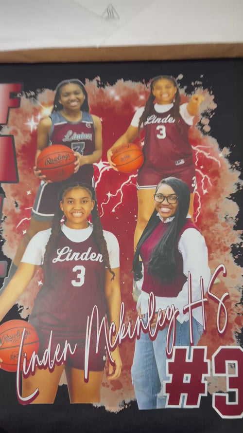 This custom graduation T‑shirt features a bold, high‑impact design created to celebrate the Class of 2026. The layout includes four dynamic photos of the graduate, arranged with striking blue lightning effects and red accents for a modern, energetic look. The design highlights the graduation year and school name, paired with the school’s mascot emblem for an authentic, school‑spirit finish. Perfect for senior photos, graduation events, and family celebration wear, this shirt delivers a personalized keepsake that stands out.